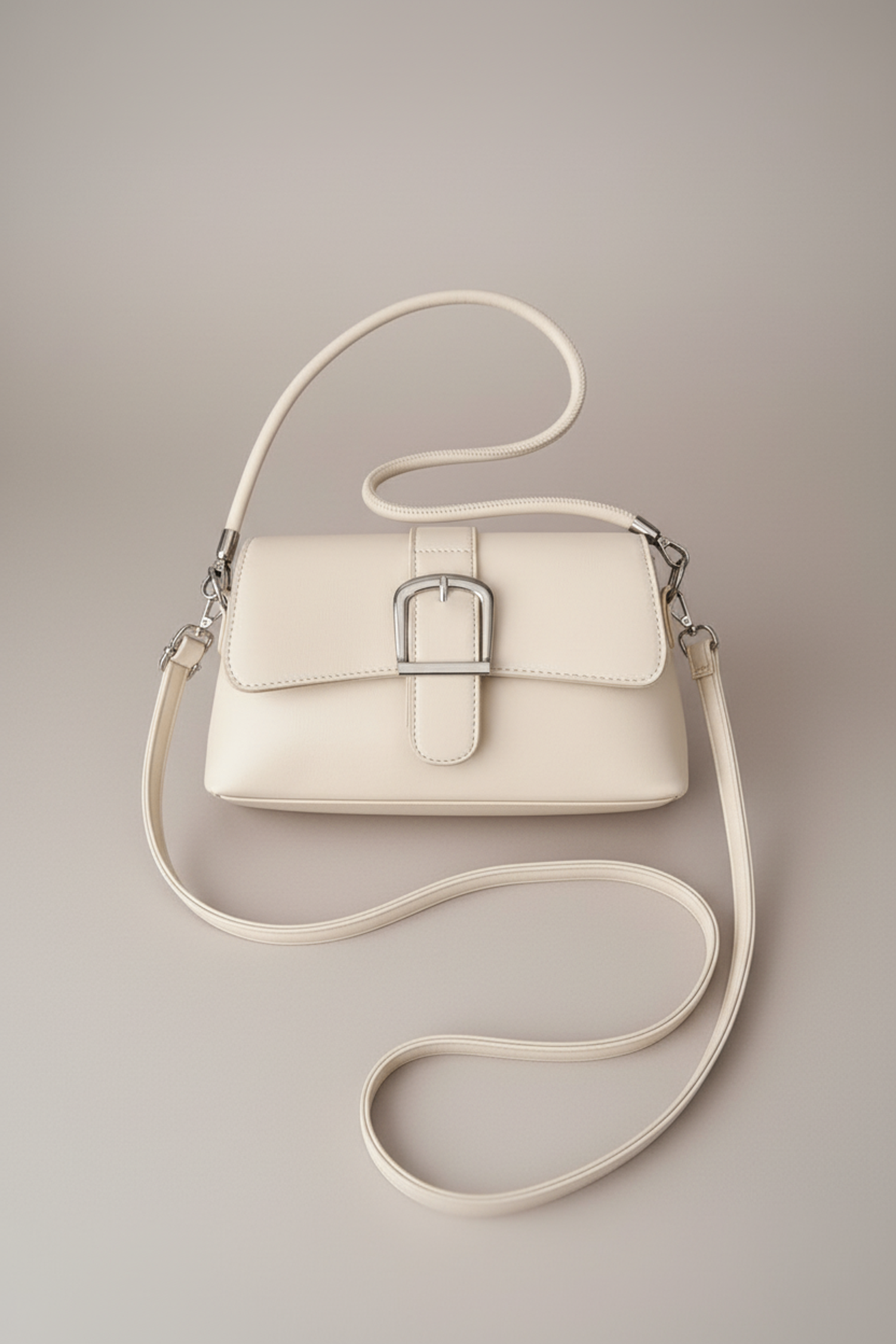 Энгийн хэрнээ цэмцгэр төрх бүрдүүлэхэд тохирох, өдөр тутамдаа ч гоёлд ч барихад эвтэйхэн загвар. Урд хэсгийн мөнгөлөг тэврэлттэй деталь нь цүнхэнд илүү эмэгтэйлэг, цэвэрхэн өнгө төрх өгнө. PU арьсан материалтай, хэлбэрээ сайхан барьдаг бөгөөд өмссөн хувцастай амархан зохицоно.